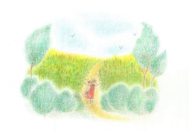 От всей этой окружающей красоты у Козы стало легко на душе, и она начала петь свою любимую песню. У неё было просто великолепное настроение. Ноги сами её несли вперед к Синей избушке. Она даже не заметила, как лес стал редеть, заканчиваться, неожиданно быстро она добралась до лесной опушки. Перед глазами Козы открылось огромное поле. Тропинка вела прямо через него.