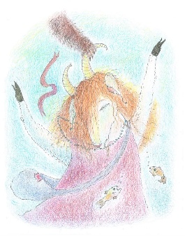 И вдруг она почувствовала, что какая-то неизвестная сила её схватила за рога и потащила наверх. Сопротивляться, как и открыть глаза и посмотреть, что это, сил не было, и Коза потеряла сознание.