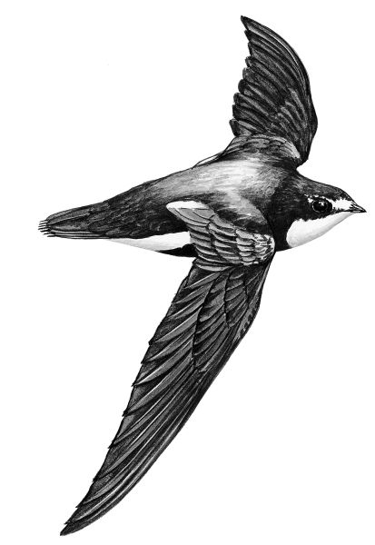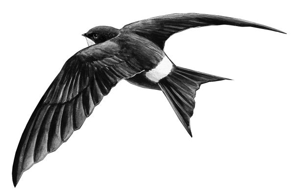 Стрижи – быстро летающие птицы с длинными крыльями, изогнутыми в виде полумесяца или серпа. Вся жизнь стрижа проходит в воздухе: в полёте он ловит насекомых своим широким ртом, похожим на сачок, в полёте пьёт, зачерпывая клювом воду, в полёте собирает пёрышки для гнезда. Даже спит стриж в воздухе: заберётся повыше и, планируя по широкому кругу, успевает немного поспать.