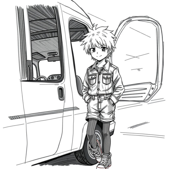 Матвей появился из дверей подъезда первым. С ним выбежала девочка, чуточку постарше и повыше его и чем-то на него похожая – сестрёнка. Мальчик был в прекрасном настроении в отличие от сестрёнки, выглядевшей явно расстроенной и недовольной. Дети поздоровались и принялись разглядывать мою старушку-машину с необычным правым рулём. Матвей был в джинсовом костюмчике из куртки и коротких штанишек – вполне подходящим на звание дорожного костюма. Под расстёгнутой курткой виднелась белая с голубыми и серыми полосками футболка, а под шортами оказались светло-серые колготки без всяких рисунков.