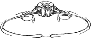 От нервных клеток спинного мозга, то есть от правой и левой половины каждого сегмента, парами отходят основные отростки-аксоны, из которых образуются левый и правый нервы сегмента. Поперечный отрезок спинного мозга и связанных с ним правого и левого спинномозговых нервов, через которые головной мозг контролирует определенный участок тела, называется нервным сегментом (рис. 6).
