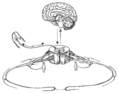 В пределах одного сегмента замыкается короткая рефлекторная дуга (рис. 7). Это промежуточное связующее звено между головным мозгом и телом.