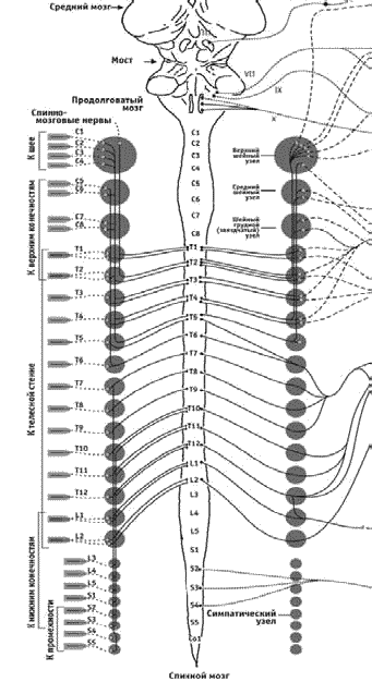 На сегодняшний день известно, через какой конкретно сегмент спинного мозга головной мозг контролирует ту или иную часть тела или органа (рис. 8).