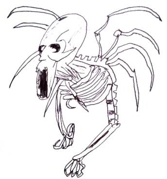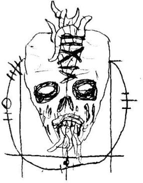 «В одном чёрном – чёрном лесу стоял чёрный – чёрный дом. В чёрном – чёрном доме была чёрная – чёрная комната. В чёрной – чёрной комнате стоял чёрный – чёрный стол. На чёрном – чёрном столе стоял чёрный – чёрный гроб. Из чёрного чёрного гроба вылез чёрный – чёрный человек и закричал: «отдай мне сердце!».