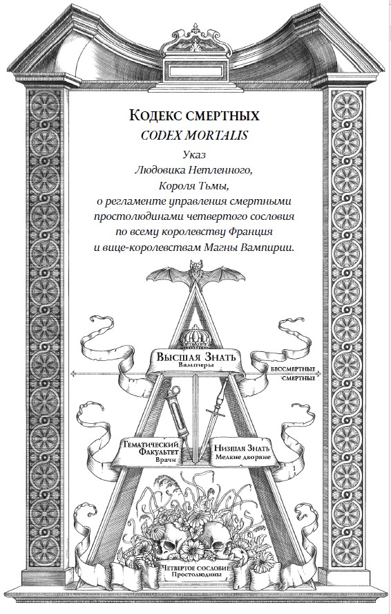 До меня донеслись приглушенные ругательства Валера. Генрих IV – предпоследний смертный король, правивший государством. Проповеди Факультета, которые доктор Бонифас читал прихожанам на службах каждое воскресенье, гласили, что трансмутация высшей знати принесла Франции и Европе pax vampyrica – прочный вампирический мир, положив конец войнам прошлого.