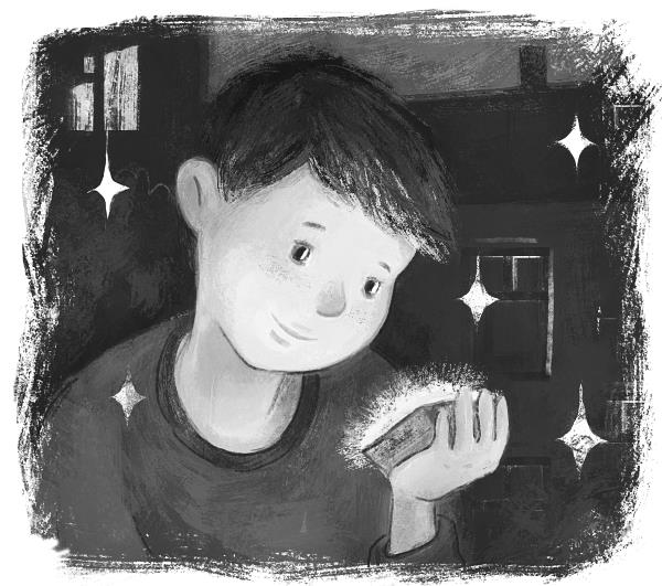 Я открыл коробочку и сперва ничего не увидел, а потом увидел маленький светло-зелёный огонёк, как будто где-то далеко-далеко от меня горела крошечная звёздочка, и в то же время я сам держал её сейчас в руках.
