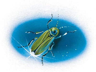 – На светлячка! – ответил я. – Вот он, в коробочке живёт. Погаси-ка свет!
