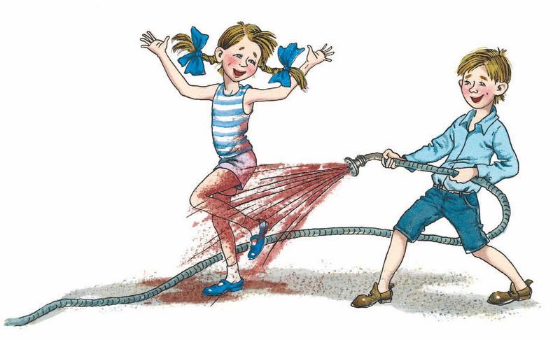 Он прямо остолбенел. И я тоже. Мы оба были как заколдованные. Главное, я его поливаю и с испугу не могу даже догадаться отвести в сторону шланг, а только размахиваю сверху вниз, снизу вверх. А у него глаза расширились, и ему в голову не приходит отойти хоть на шаг вправо или влево…