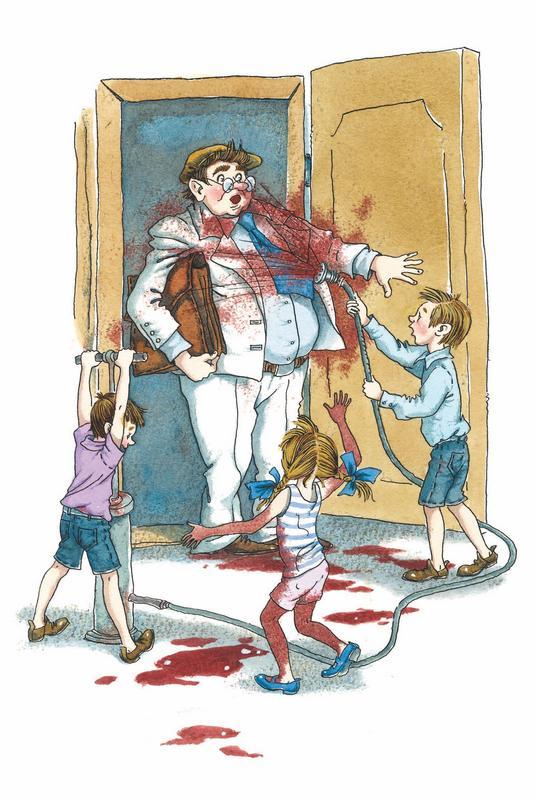 На голове у этого дяденьки была шляпа. А на шляпе наша каша. Она лежала почти в середине шляпы, в ямочке, и немножко по краям, где лента, и немножко за воротником, и на плечах, и на левой брючине. Он как вошёл, сразу стал заикаться: