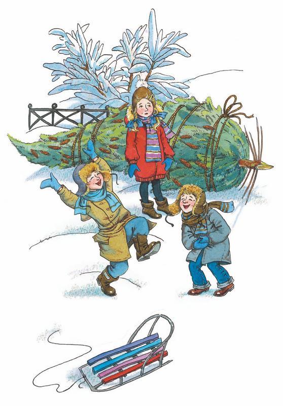 Недавно мы гуляли во дворе: Алёнка, Мишка и я. Вдруг во двор въехал грузовик. А на нём лежит ёлка. Мы побежали за машиной. Вот она подъехала к домоуправлению, остановилась, и шофёр с нашим дворником стали ёлку выгружать. Они кричали друг на друга:
