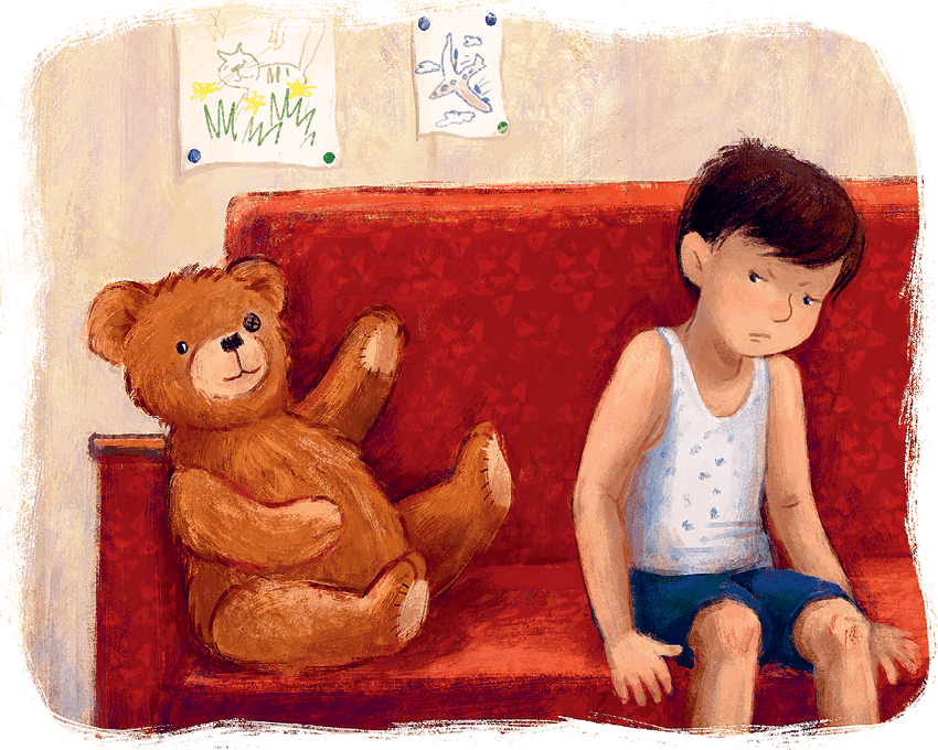 А я очень обрадовался, что мама так здорово придумала. И я устроил Мишку поудобнее на диване, чтобы мне сподручней было об него тренироваться и развивать силу удара.