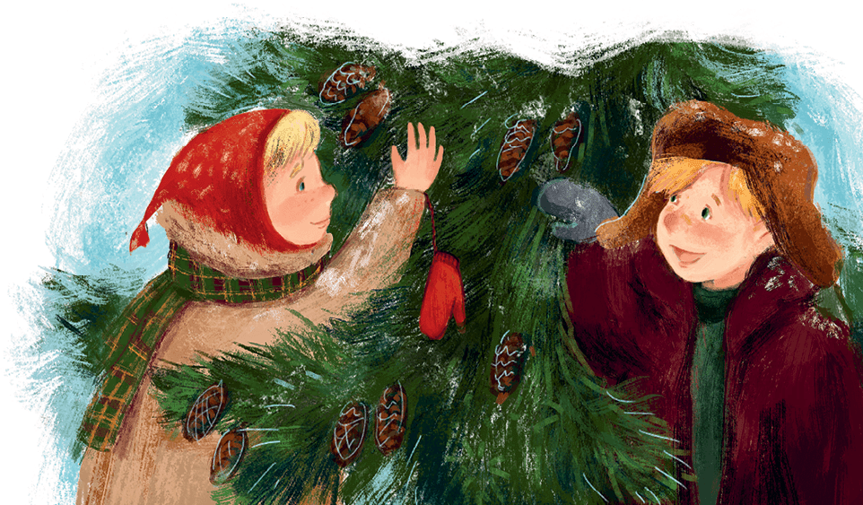 Недавно мы гуляли во дворе: Аленка, Мишка и я. Вдруг во двор въехал грузовик. А на нем лежит елка. Мы побежали за машиной. Вот она подъехала к домоуправлению, остановилась, и шофер с нашим дворником стали елку выгружать. Они кричали друг на друга: