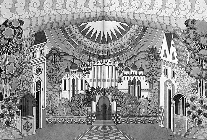 Иван Билибин. Эскиз декорации к опере «Сказание о невидимом граде Китеже и деве Февронии». 1929 г.