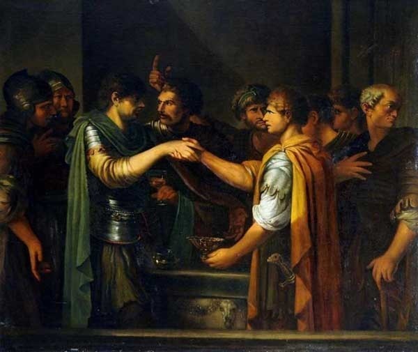 Клятва Катилины. Художник Жозеф-Мари Вьен. Участники заговора Катилины клялись в верности на чаше с человеческой кровью