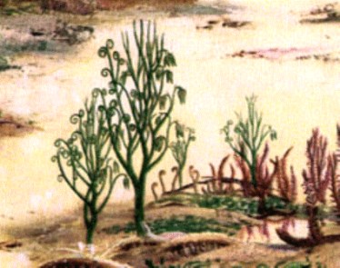 Растительный мир кембрия характеризуется многочисленными водорослями. В это время, вероятно, появились первые наземные растения – псилофиты. Они получили название от латинского слова «псилос» – голый, в связи с тем, что эти растения не имели ещё ни корней, ни листьев. Все функции организма выполнял стебель.