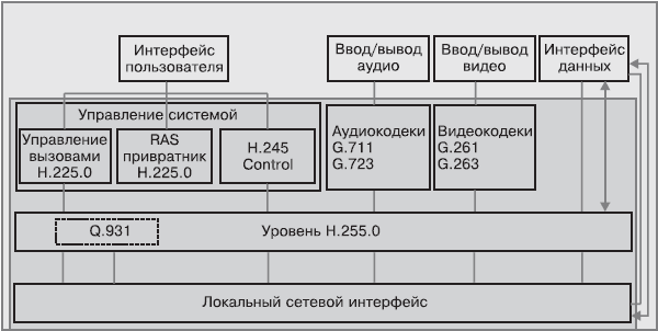 Рис. 1.4. Архитектура Н.323 и основные стандарты, входящие в этот набор