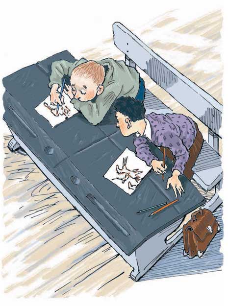– Значит, все приготовились? – Он встаёт, ходит по классу. Кладёт на парты листки рисовальной бумаги.