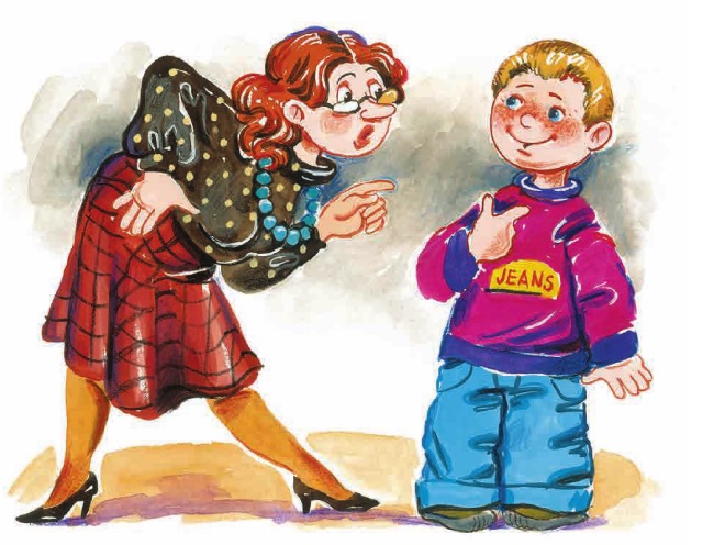 Он сунул книгу бабушке, но она зевнула и выронила её из рук. Он поднял с пола книгу и опять отдал бабушке.