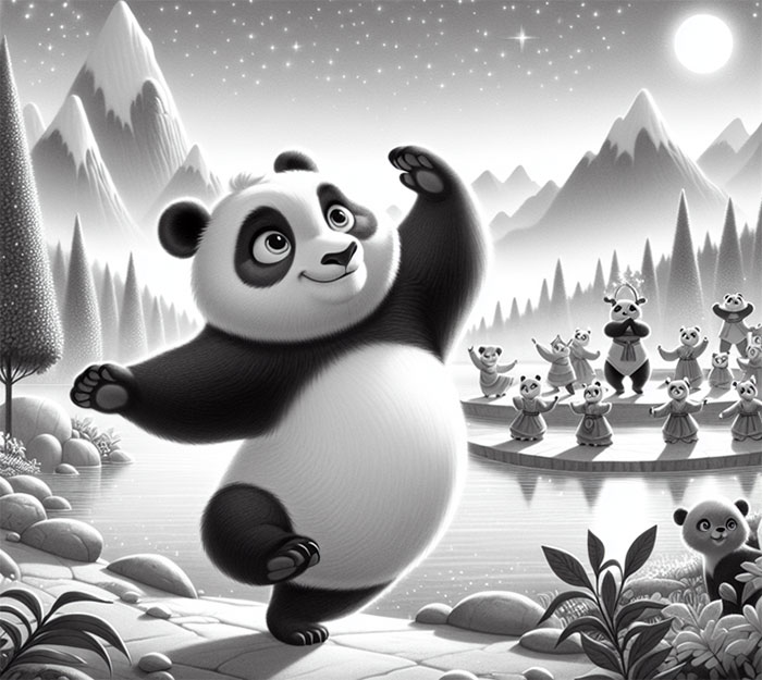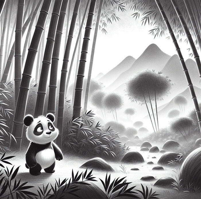В бамбуковом лесу, в предгорье далекой страны, где царила тишина и покой, каждое утро начиналось с чарующего пения птиц, а дыхание ветра переплеталось с мудростью старых храмов, жил умный и любознательный Шао – маленькая черно-белая панда со своими родителями.