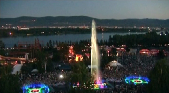 Открывает бутылку шампанского. Все чокаются. Зажигают бенгальские свечи. Запускают фейерверки. Все кричат