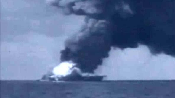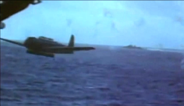 Самолет камикадзе на бреющем полете достиг американский корабль