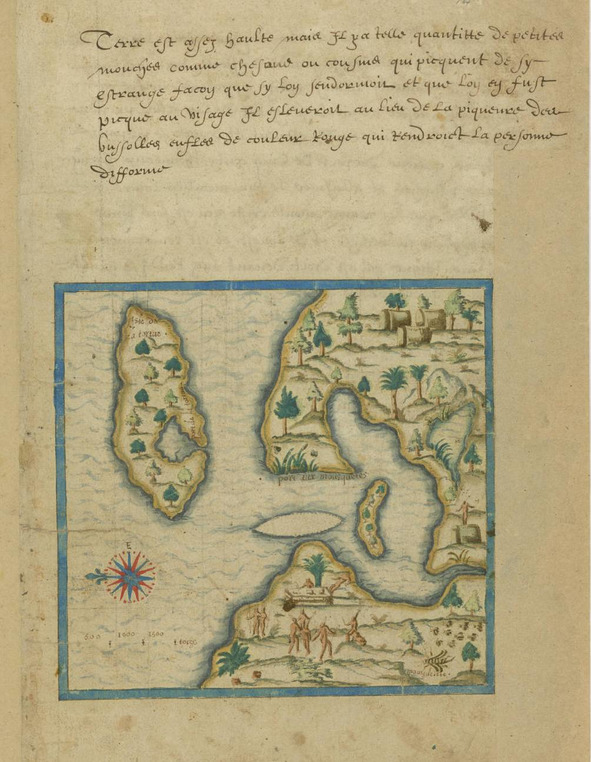 В конце концов, я все же взял пятьдесят человек на борт и в тот же день отплыл вместе с ними за Каймите – остров, где мы стояли на якоре… Тут же несколько англичан сошли на берег с одним малым, который умел обращаться с гарпуном, и поймали морскую корову, которую вечером доставили на борт вместе с тремя большими черепахами. Поскольку было очень опасно оставаться здесь, на плохом грунте, и нельзя было набрать воды, мы решили идти в бухту Гоава, что на острове Гуанабо, расположенном примерно в десяти или двенадцати милях в глубине залива.