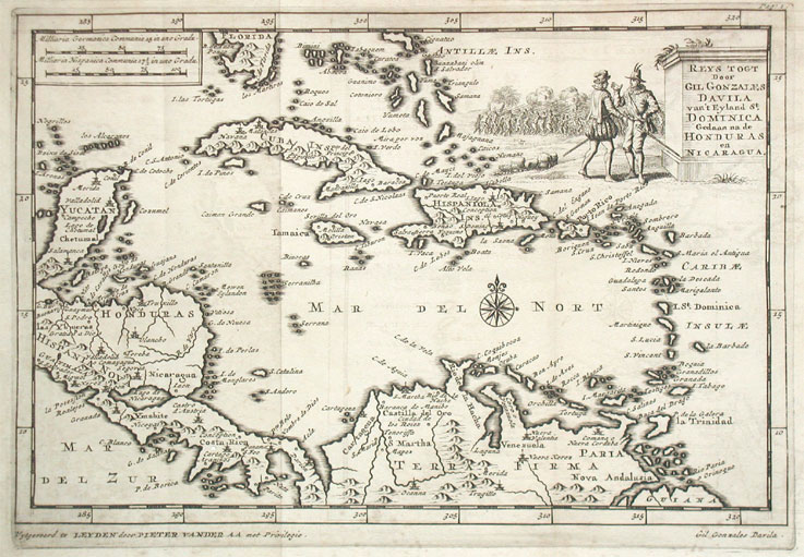 Голландская карта Карибского моря, XVII век. Картограф Питер ван дер Аа.