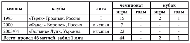 Амплуа: полузащитник. Мастер спорта Казахстана с 1996 года.