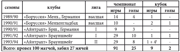 Примечание: В столбце «Кубок (игры)» – внесены 4 матча в региональном Кубке Германии.