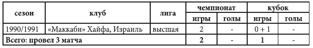 Примечания: В столбце «Кубок (игры/голы)» – внесены 4 матча и один гол Кубке ТОТО Израиля.
