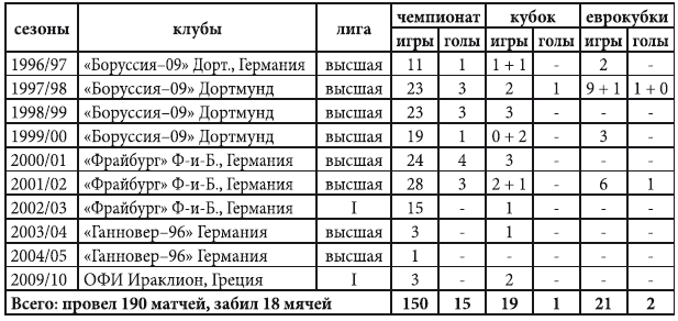• Лучший ассистент «Фрайбурга» в чемпионате Германии сезона 2000/2001–8 голевых передач.