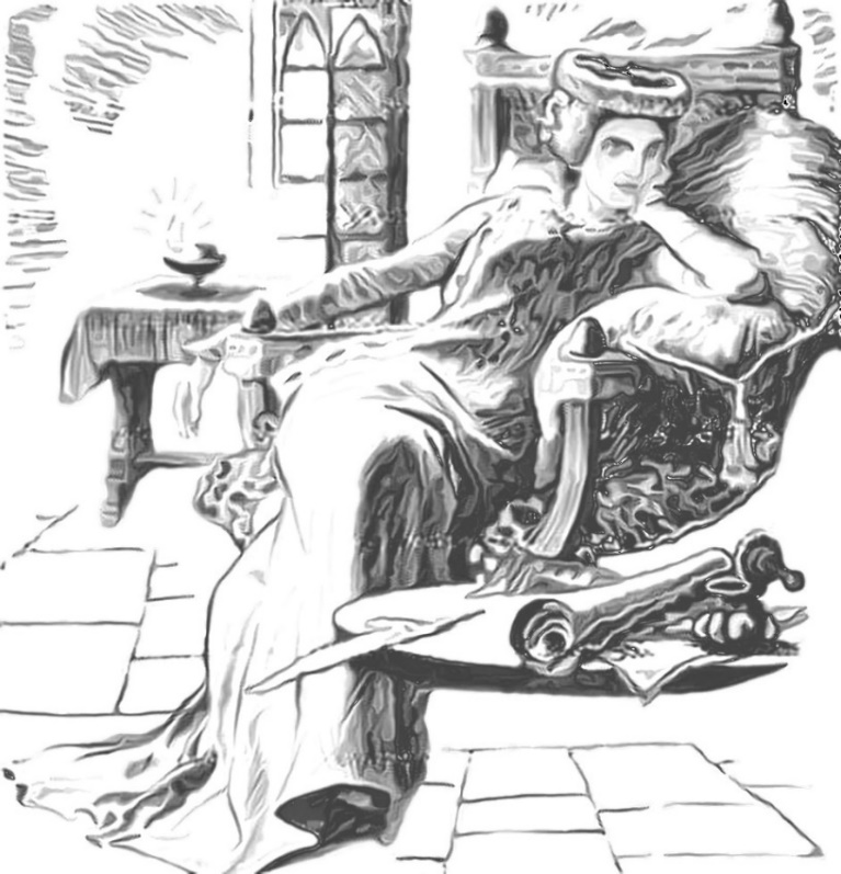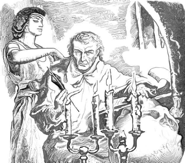 Тейя, бледная и дрожащая, попятилась, и, наткнувшись на своё кресло, бессильно опустилась на него. Осеннее солнце, врывалось в раскрытую ставню окна и обливало её потоком света. Сначала она не видели ничего кругом. Ностальгия счастья отделило её реального мира; она говорила несвязными словами и шёпотом, который передавал порывы некой радости, но которые становились похожи на выражение боли о человеке, которого ей так недоставало. Алорк видел мрачное лицо Тейи, которое выступало из полумрака, бледное и угрожающее.