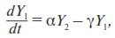 2. Прирост прибыли dY2/dt пропорционален числу клиентов Y1, а также той части прибыли Y2, которую фирма вкладывает в доходные предприятия (~Y1Y2). Отрицательная составляющая представляет собой часть прироста прибыли, которую фирма не дополучила из-за выплат клиентам (~Q*).