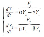 скорость роста числа сотрудников (dY1/dt) пропорциональна числу новых сотрудников минус ту ее часть, которая связана с количеством уволившихся.
