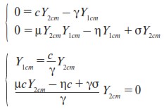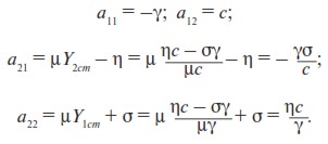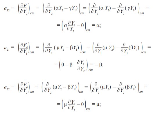 2. Проверим на устойчивость стационарное состояние (29). Для этого его стационарные значения Y1ст и Y2ст подставим в (32) и (33). В результате с учетом (30) и (31) найдем: