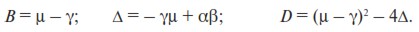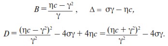 B = σ – γ, ∆ = ηc – σγ, D = (σ + γ)2 – 4ηc.