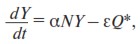 В качестве переменной задачи выберем прибыль страховой компании Y. Сформулируем главную пропорцию: прирост прибыли dY/dt (увеличение прибыли с течением времени t) пропорционален числу клиентов, а также величине самой прибыли, если часть прибыли вкладывается в какие-нибудь доходные предприятия (~ NY). Кроме того, следует отнять ту часть прироста прибыли, которую фирма не дополучила из-за выплат клиентам (~ Q*). Уравнение, соответствующее данной пропорции, примет вид