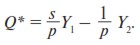 Количество страховых выплат Q* найдем из (21) (напомним, что в данной модели в роли Y выступает Y2, в роли N выступает Y1):