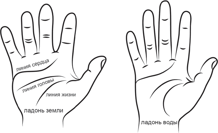 Рука Воды. Красивые руки, продолговатые ладони и длинные пальцы. Несмотря на изящество, они говорят о нелегкой жизни их обладателей – впечатлительных, изменчивых и эмоциональных людей, чувства которых легко ранить. Эти руки называют также интуитивными, поскольку у человека яркое преобладание духовного начала. Это утонченные натуры с богатым внутренним миром, рожденным неиссякаемым воображением и наполненным причудливыми фантазиями. Их привлекают мистические и духовные стороны жизни. По-настоящему счастливыми они чувствуют себя, только находясь в состоянии влюбленности. Их главная проблема – нежелание действовать в соответствии со своими чувствами.