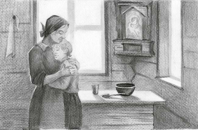 Мишка стремительно вбежал в горницу и припал к ее груди. Татьяна Ивановна, нежно обняв сына, тихо прошептала: