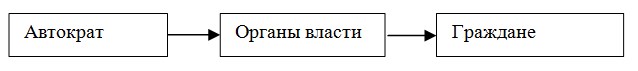 В нижеприведённых рисунках стрелка обозначает поток власти (воли).