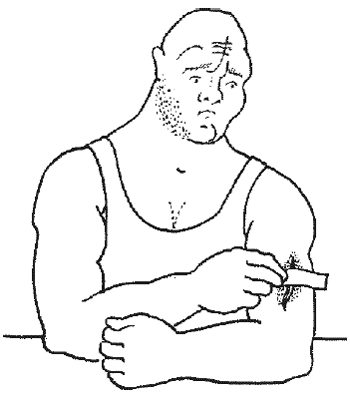 Чаще всего кровотечение удается остановить давящей повязкой. Прикройте рану самым чистым из того, что окажется под рукой. Если нет стерильной марлевой салфетки, возьмите чистый носовой платок, кусок рубашки или платья, бумажную салфетку, сложенный в несколько раз кусок туалетной бумаги. Словом, любой более или менее чистый материал, способный впитывать влагу. Закрыв рану салфеткой или тем, что ее заменяет, приступайте к бинтованию.