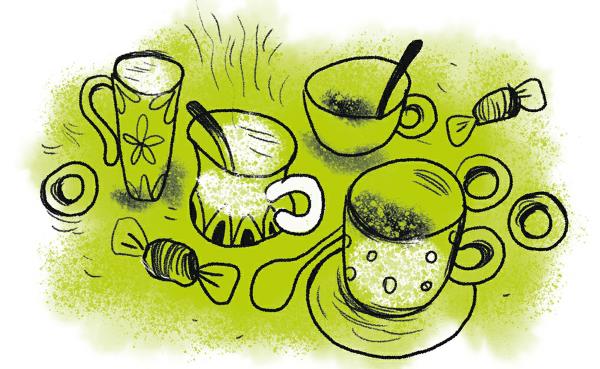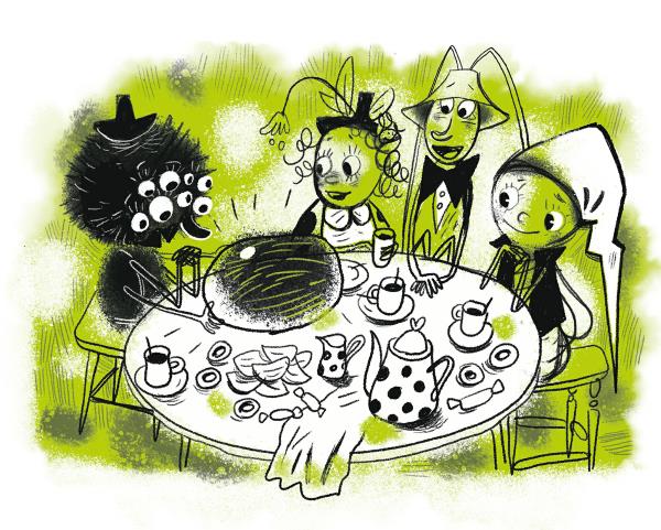 Тут рядом со столом началось небольшое землеизвержение… Когда крот Прокоп высунул голову, она оказалась как раз на уровне стола. В панику никто не впадал, а божья коровка Пятнашка налила новому гостю чашечку чая.