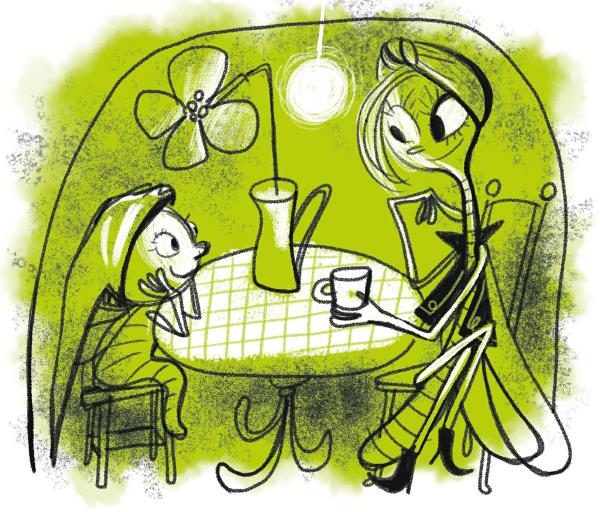 Стрекозка отпила ещё глоток чая, подумала, а потом подскочила с криком: