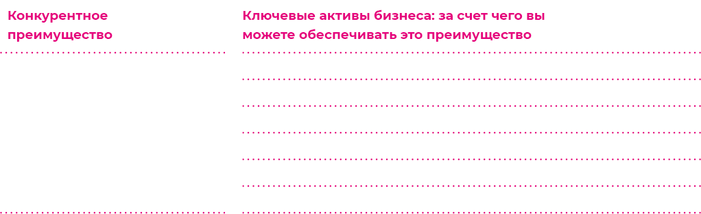 Из примеров видно: чтобы сделать вывод, тиражируется ли ваше конкурентное преимущество, нужно понять, тиражируются ли ключевые активы вашего бизнеса – те самые активы, которые и обеспечивают ваше преимущество перед конкурентами. Заполните таблицу.