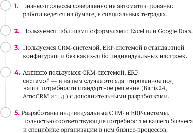 Теперь проанализируйте, как автоматизация выстроена в вашем бизнесе, и оцените ее уровень по 5-балльной шкале.
