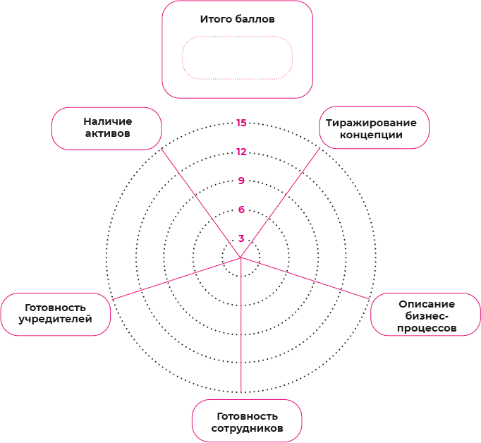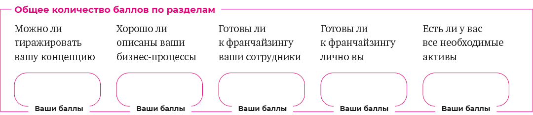 Теперь, когда вы оценили свою готовность к франчайзингу по всем фронтам, – заполните диаграмму. Сделать это очень просто.