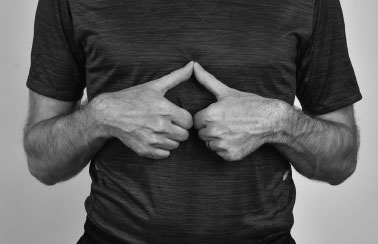 Для выполнения этого теста разденьтесь по пояс, подойдите к зеркалу, ладонные поверхности больших пальцев прижмите к реберным дугам, а концы пальцев уприте в тот угол, где реберные дуги соединяются в области мечевидного отростка грудины. У нормостеников этот угол равен 90 градусам (угол прямой), у астеников – меньше 90 градусов (угол острый), у гиперстеников – больше 90 градусов (угол тупой).