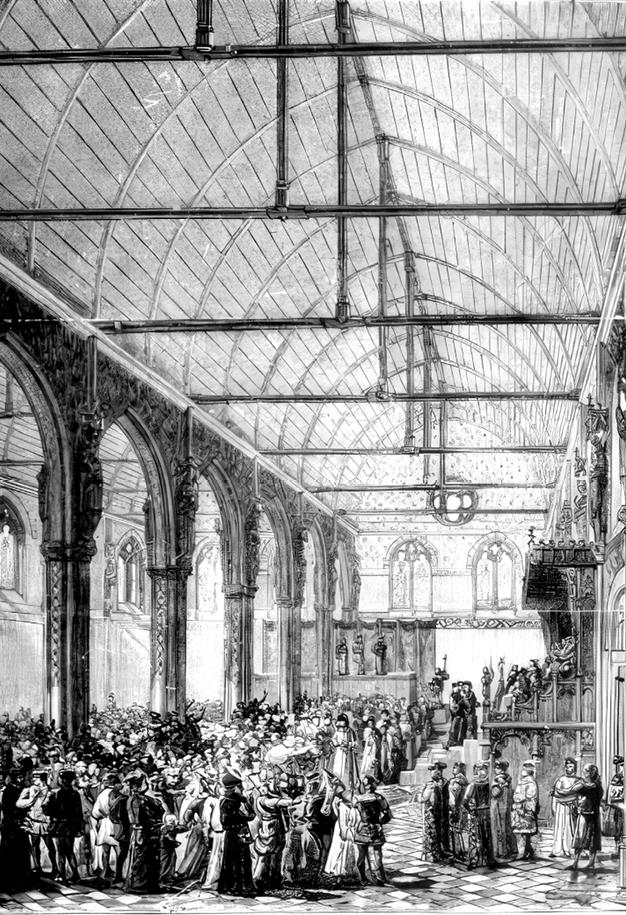 Если бы нам, живущим в 1830 году, дано было мысленно вмешаться в толпу парижан XV века и, получая со всех сторон пинки, толчки, еле удерживаясь на ногах, проникнуть вместе с ней в эту обширную залу Дворца, казавшуюся в день 6 января 1482 года такой тесной, то зрелище, представившееся нашим глазам, не лишено было бы занимательности и очарования; нас окружили бы вещи столь старинные, что они для нас были бы полны новизны.