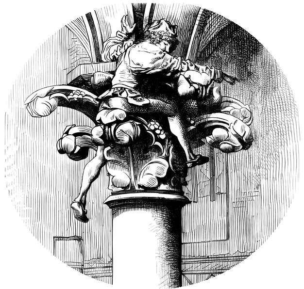 – Чего это они гогочут? – продолжал маленький чертенок, примостившийся на капители. – Ну да, почтеннейший Жиль Лекорню, брат Жеана Лекорню, дворцового судьи, сын мэтра Майе Лекорню, главного смотрителя Венсенского леса; все они граждане Парижа и все до единого женаты.
